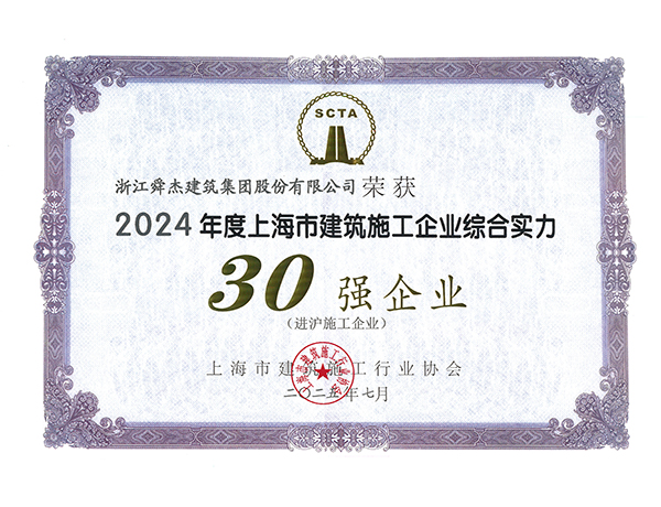 上海市建筑施工企业综合实力30强(进沪施工企业)